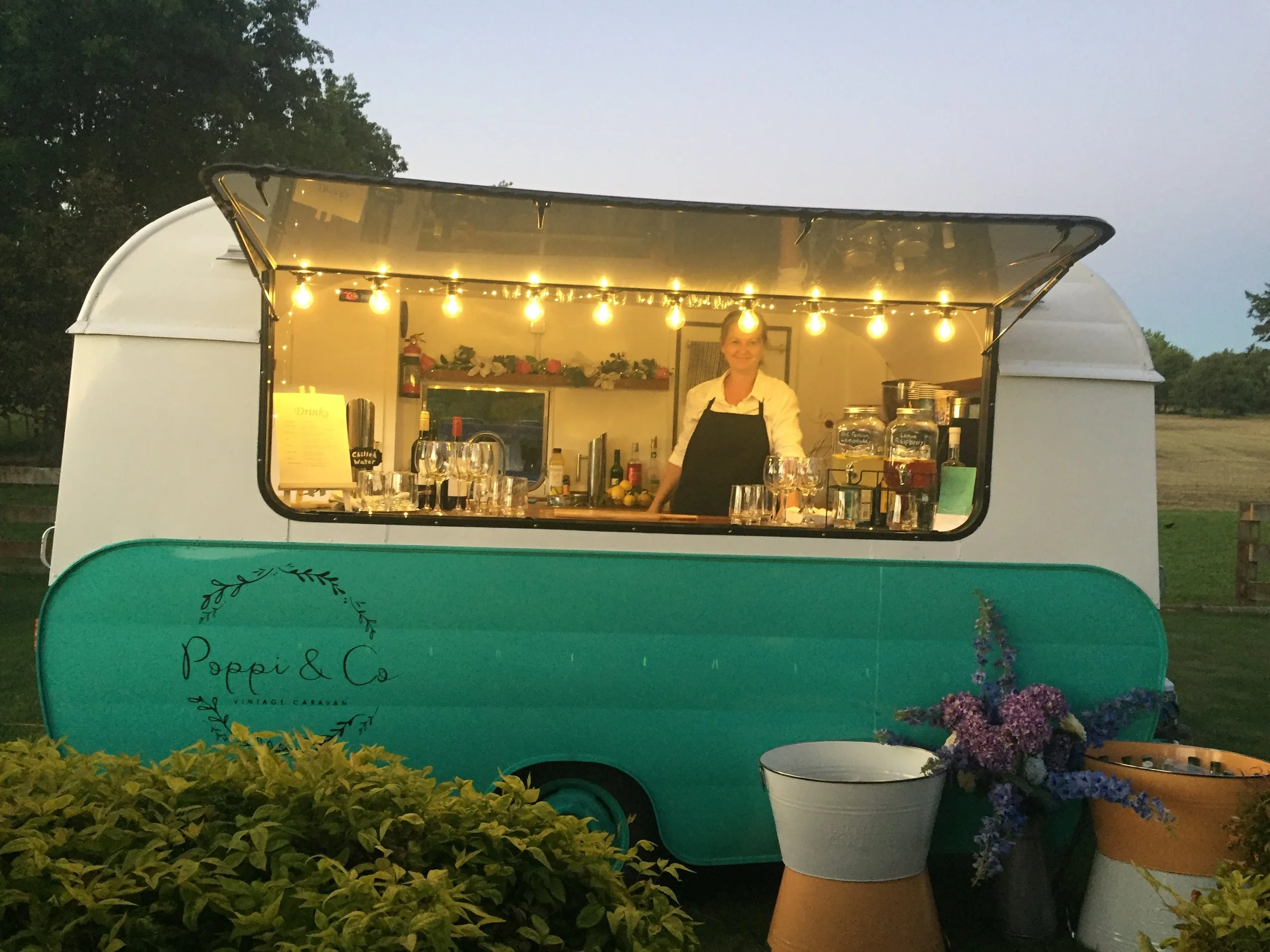 (number of bar staff dependent on guest numbers & drinks to be served)Poppi caravan is equipped with small freezer, small fridge and an 11 bottle wine chiller